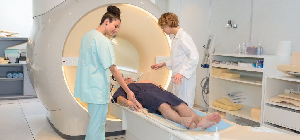During a CT or HRCT scan, you lie on a bed that moves slowly backwards and forwards through the scanner.