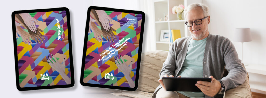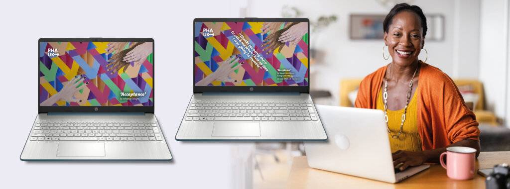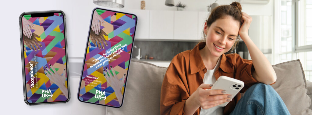Save this meaningful artwork to your devices and remember there are always people there to catch you. Two versions are available – one with the quote from a PHA UK member included, and one without. The choice is yours!