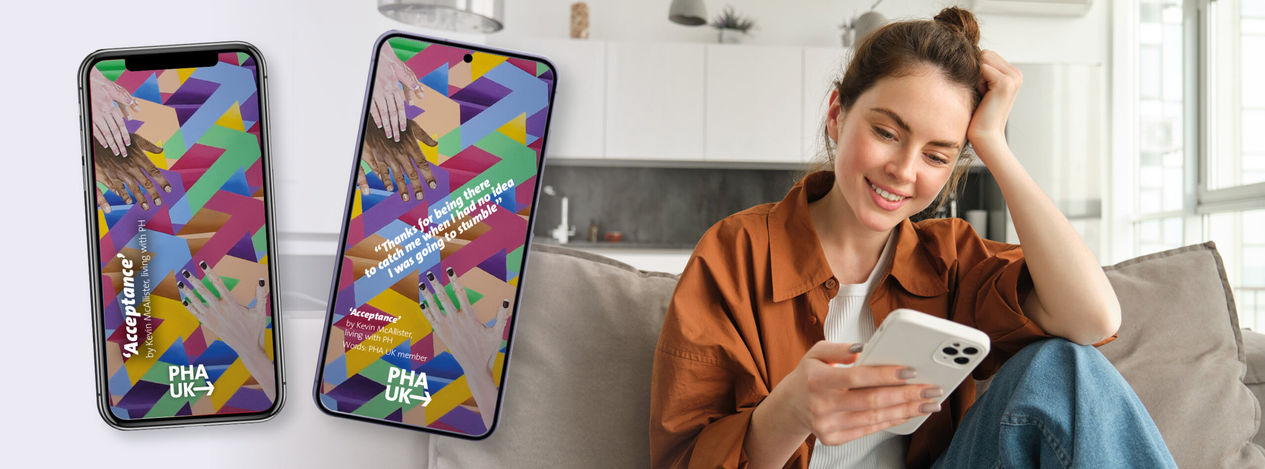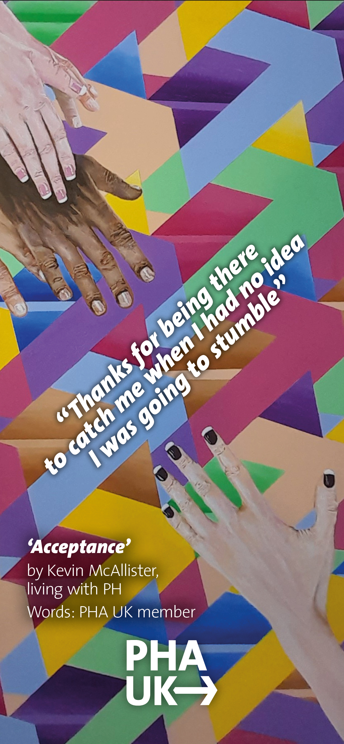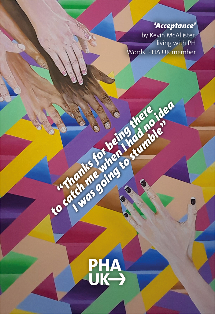 Save this meaningful artwork to your devices and remember there are always people there to catch you. Two versions are available – one with the quote from a PHA UK member included, and one without. The choice is yours!