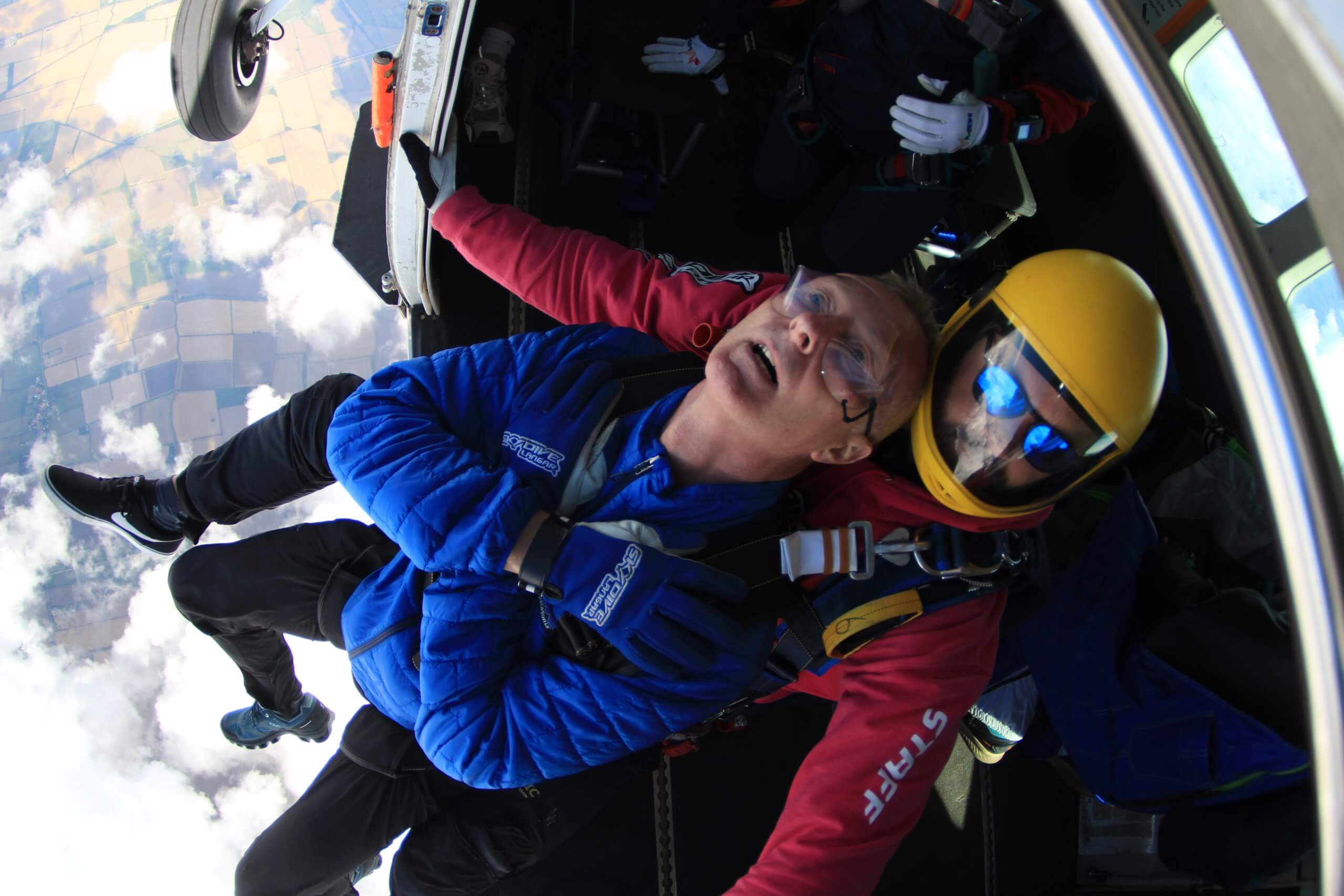 The jump was exhilarating and something I will never forget. I was the second person out of the plane and had to sit in the doorway with my legs tucked under, before rolling out with the instructor.