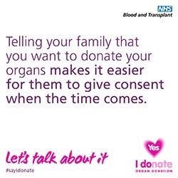The more people we have openly discussing organ donation, the more it may encourage people to register as organ donors and the easier it may be for families to say ‘yes’ to organ donation.