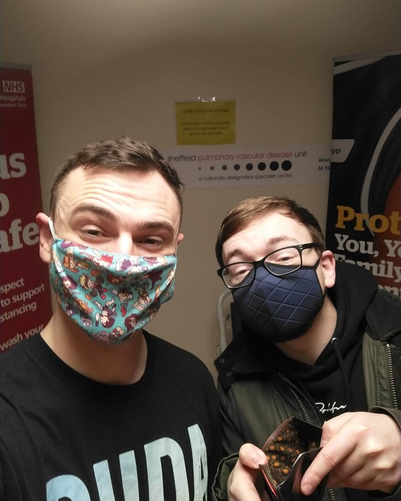 Ian is pictured with friend Joshua Evers, who was the WhatsApp group member fined the most for swearing in November. The pair delivered the money in person to the Sheffield Pulmonary Vascular Disease Unit, where PHA UK chair Iain Armstrong works as a nurse consultant.
